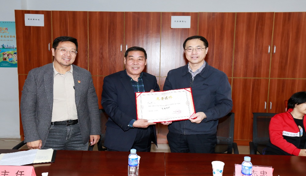 荣休仪式上白志忠副院长为包长林老师颁发荣休证书,思政课程组巴音色庆教师为包长林老师送上鲜花。